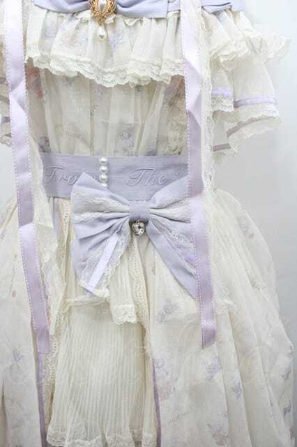 Bramblerose / リボンフラワーレースボリュームジャンパースカートセット 白XサックスXラベンダー I-26-01-13-055-0-OP-SA-ZI