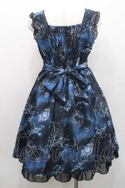 axes femme / 天体柄Wボタン使いワンピース M ネイビー I-26-01-13-065-AX-OP-TE-ZI