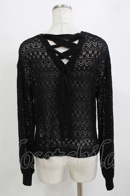 axes femme / レースアップ透かし編みニット Free ブラック H-26-01-20-059-AX-TO-NS-ZH