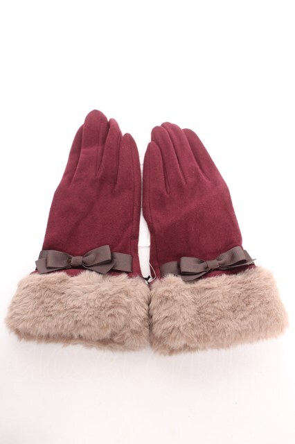 axes femme / ファー×リボン手袋 ワイン Y-26-01-16-004-AX-ZA-SZ-ZY