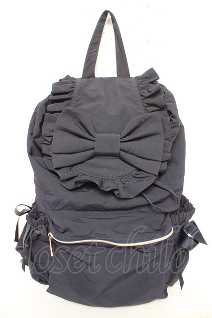 m petit by misako / TT AM リボンフラップ リュックサック 紺 Y-26-01-16-023-LO-BG-SZ-ZY