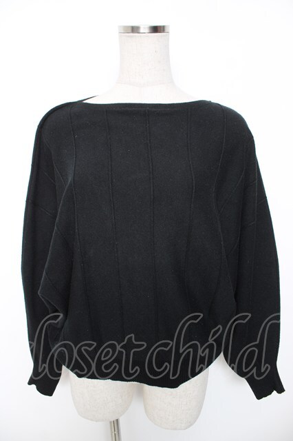 axes femme / ストライプニットドルマンプルオーバー 黒 Y-26-01-16-067-AX-TO-SZ-ZY
