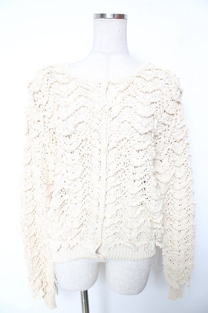 INGEBORG / スカラップフリル編み透かしカーディガン 生成り Y-26-01-16-118-LO-TO-SZ-ZY