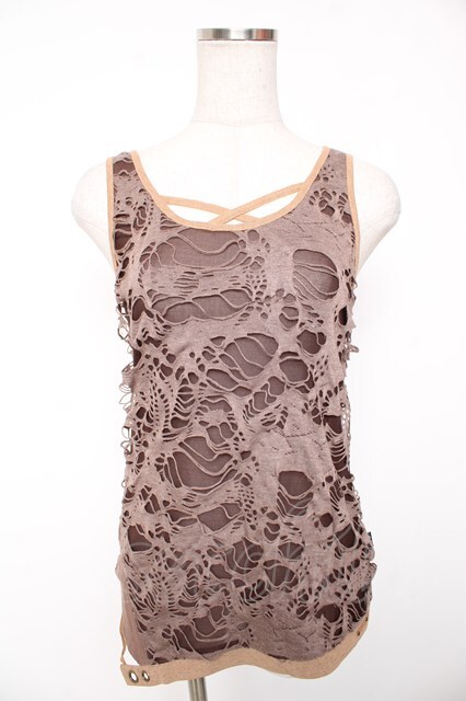 Ozz Croce / プリント入り異素材切替ノースリーブトップス ブラウン Y-26-01-16-129-OO-TO-SZ-ZY [戻る]