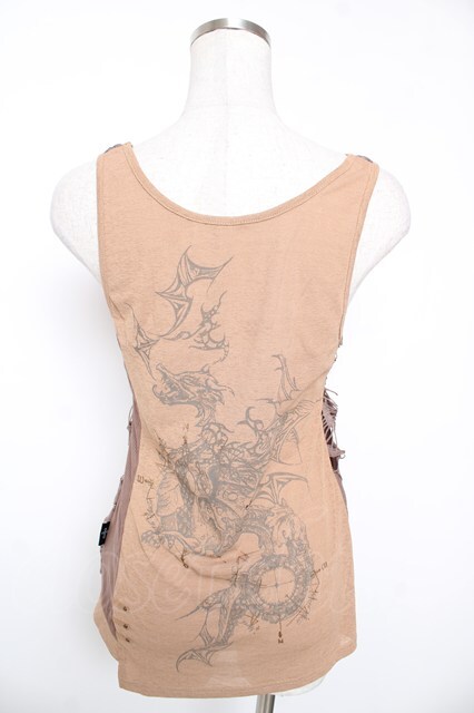 Ozz Croce / プリント入り異素材切替ノースリーブトップス ブラウン Y-26-01-16-129-OO-TO-SZ-ZY
