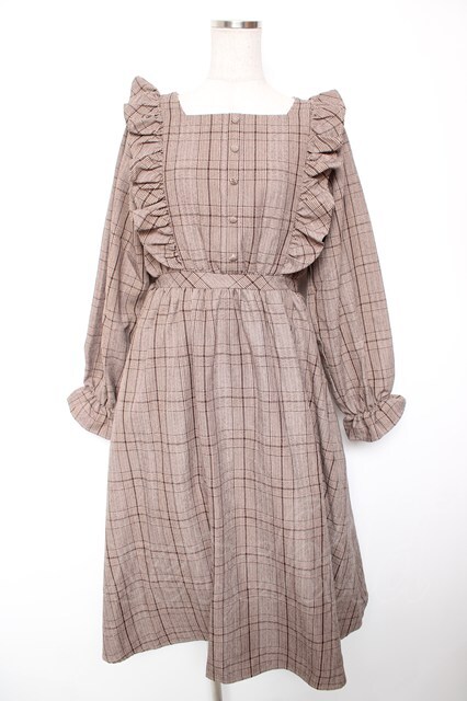 m petit by misako / CHKフリルOPナガ ワンピース M 中茶 Y-26-01-16-165-LO-OP-SZ-ZY