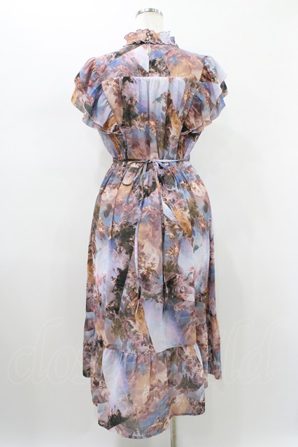 axes femme Nostalgic / 天使柄シャーリングワンピース M ブルー H-26-01-19-1033-LO-OP-NS-ZH