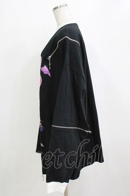 Amilige / 檀上大空コラボイラスト肩ZIPロングTシャツ「I'm a devil now!」 ブラック H-26-01-21-055-PU-TO-KB-ZH [戻る]