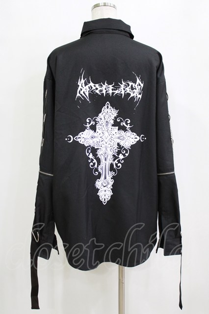 Amilige / クロスロゴプリント袖リングシャツ&リングクロス刺繍ネクタイ ブラック H-26-01-21-047-PU-BL-KB-ZH