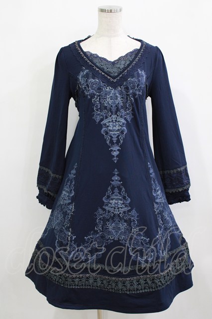 Ozz oneste / レース切替プリントワンピース ネイビー H-26-01-21-016-OO-OP-KB-ZH [戻る]