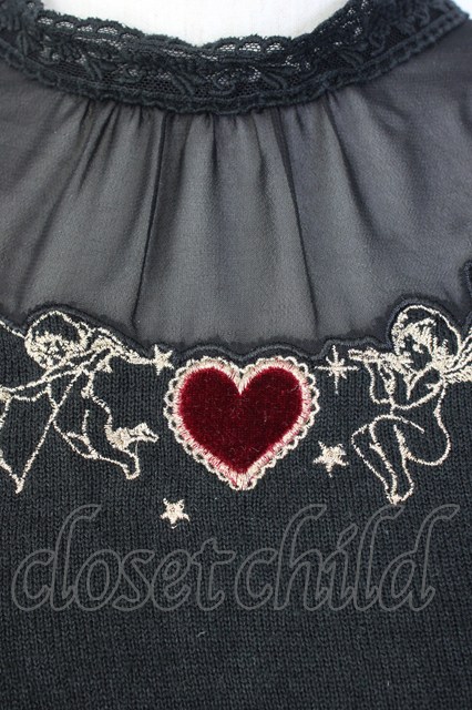 Secret Honey / エンジェル刺繍ニットトップス 黒XゴールドX赤 T-26-01-16-011-CA-TO-SA-ZT