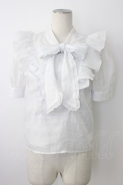 evelyn / Vフリルボウタイブラウス ホワイト T-26-01-16-016-LO-BL-SA-ZT