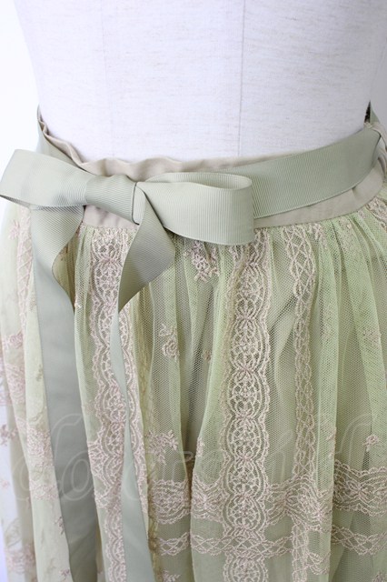 axes femme / レース×小花刺繍刺繍チュールスカート グリーン T-26-01-16-030-AX-SK-IG-ZT