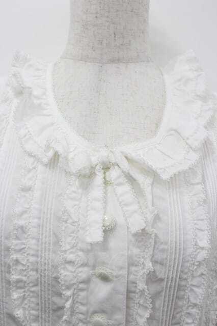 WONDERFUL WORLD / ピンタックフリル半袖ブラウス 白 I-26-01-15-020-LO-BL-SA-ZI