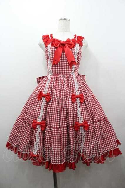 metamorphose / Fluffyフリルティアードジャンパースカート(ギンガム) 赤ギンガム I-26-01-15-048-ME-OP-SA-ZI [戻る]