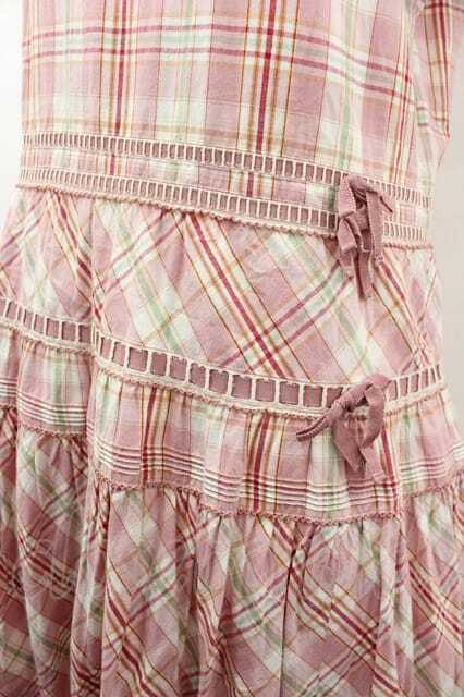 WONDERFUL WORLD / はしごリボンチェック半袖ワンピース ピンクチェック I-26-01-15-075-LO-OP-SA-ZI