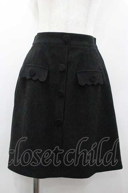Ank Rouge / フロントボタンミニスカート 黒 I-26-01-15-086-CA-SK-SA-ZI