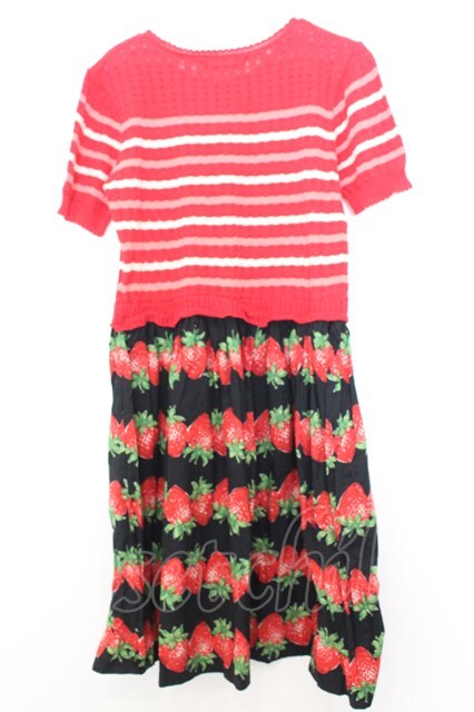 Jane Marple / ニットとストロベリーボーダーのトロンプルイユワンピース M アカ系 O-26-01-16-029-JM-OP-IG-OS