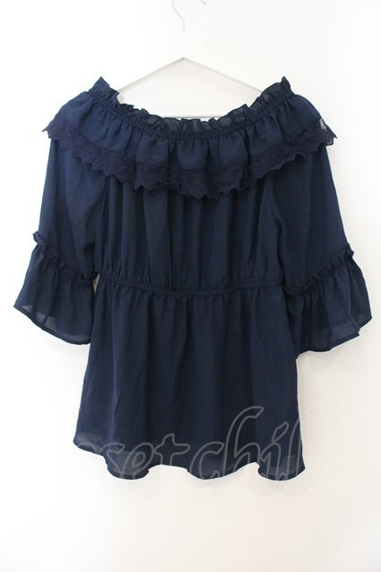 axes femme kawaii / エンパイアフリルブラウス M ネイビー O-26-01-17-076-AX-BL-OW-OS