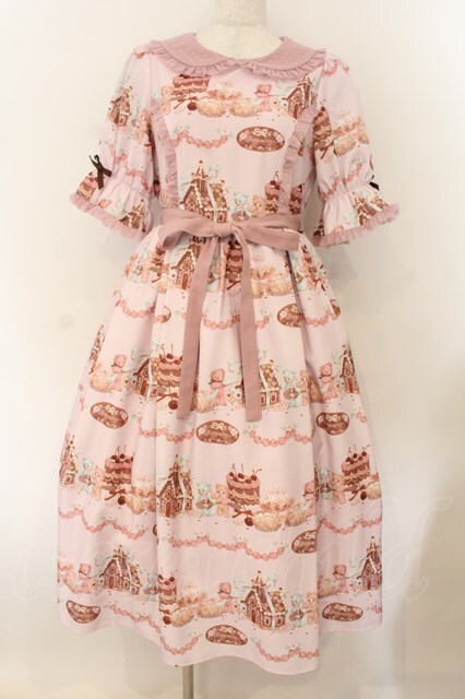 axes femme kawaii / お菓子の家柄ワンピース ピンク O-26-01-17-019-AX-BL-IG-OS
