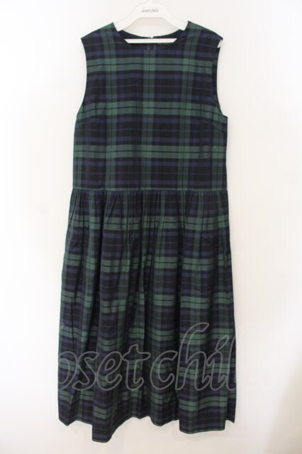 Jane Marple / Memorial Check ノースリーブドレス M ネイビー×グリーン O-26-01-17-041-JM-OP-IG-OS