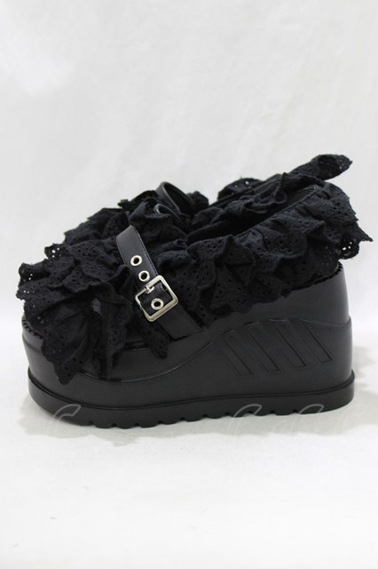 Jamie エーエヌケー / フリフリ厚底スニーカー L/24.0〜24.5cm ブラック H-26-01-22-1070-LO-SH-NS-ZH