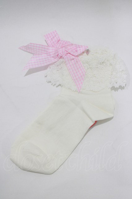 BABY,THE STARS SHINE BRIGHT / ギンガムトーションレ‐スクルー丈ソックス オフ/ピンク H-26-01-22-1050-BA-ZA-NS-ZH