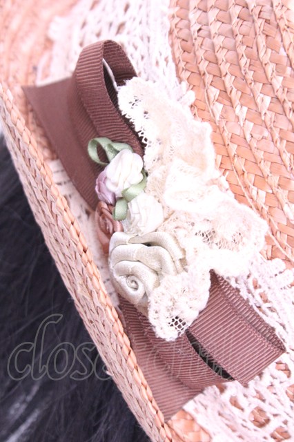 axes femme / 巻きバラ付き雑材ポークパイ帽 ナチュラル O-26-01-16-1014-AX-AC-OW-OS [戻る]