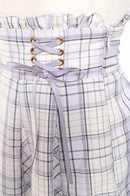 Amavel / ダブルレースアップはぎフレアチェックスカート ラベンダー Y-26-01-20-157-CA-SK-SZ-ZS [戻る]