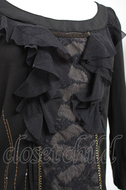 Rozen Kavalier / フロントレース裾刺繍トップス 黒 Y-26-01-20-015-OO-TO-SZ-ZY