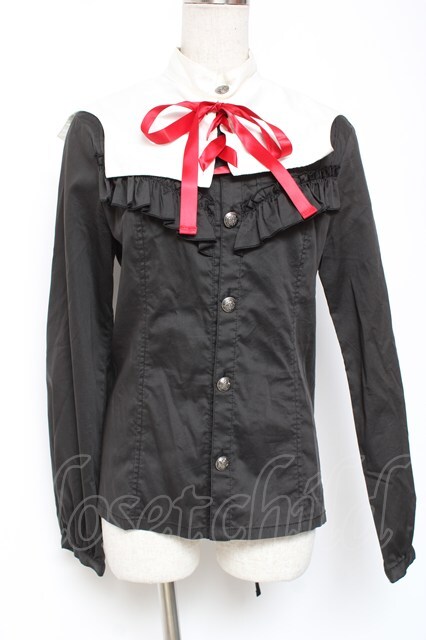 ALGONQUINS / つけ襟付きフリルブラウス M 黒 Y-26-01-20-037-AL-BL-SZ-ZI