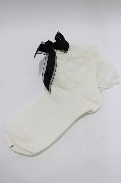 BABY,THE STARS SHINE BRIGHT / Roseリボンのクルー丈ソックス オフ/ブラック H-26-01-22-1051-BA-ZA-NS-ZH