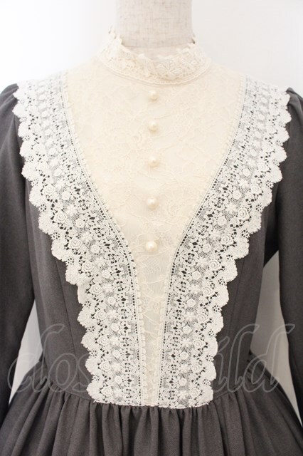 Innocent World / キャトリーヌ(長袖)ワンピース M グレー×キナリ O-26-01-17-015-IW-OP-OW-OS [戻る]