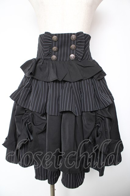 Chalmiere / ストライプフリルスカート M 黒 Y-26-01-18-129-LO-SK-SZ-ZY