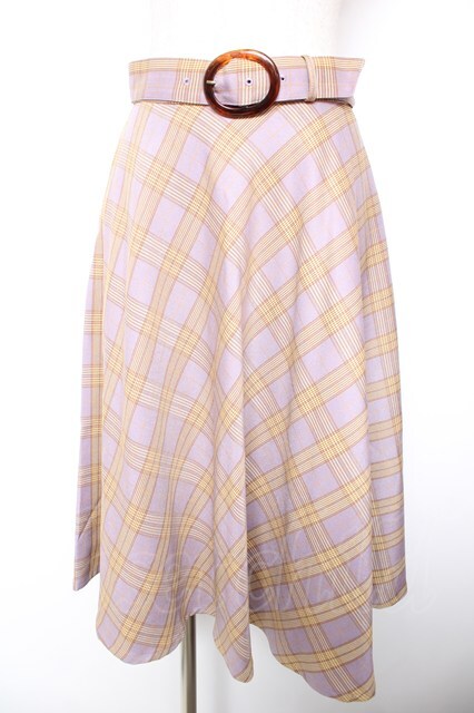 F&A / べっ甲ベルト付きチェックフレアースカート F パープル Y-26-01-18-132-LO-SK-SZ-ZY