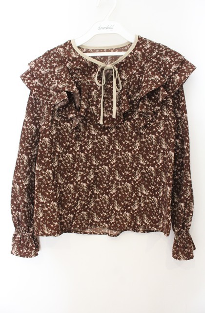 an another angelus / 小花柄ラッフルフリルブラウス ブラウン O-26-01-19-1008-CA-BL-IG-OS