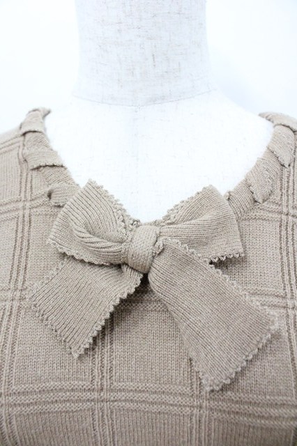 INGEBORG / チェックリボンニットトップス ブラウン I-26-01-18-039-LO-TO-SA-ZI