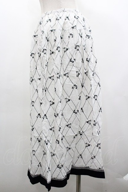 KETTY / スカート 格子フラワー刺繍 I-26-01-18-082-EL-SK-SA-ZI
