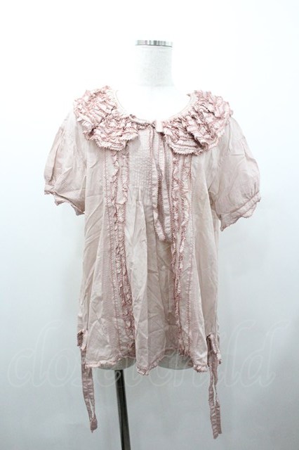 WONDERFUL WORLD / ピコフリル襟半袖ブラウス ピンク I-26-01-18-011-LO-BL-SA-ZI