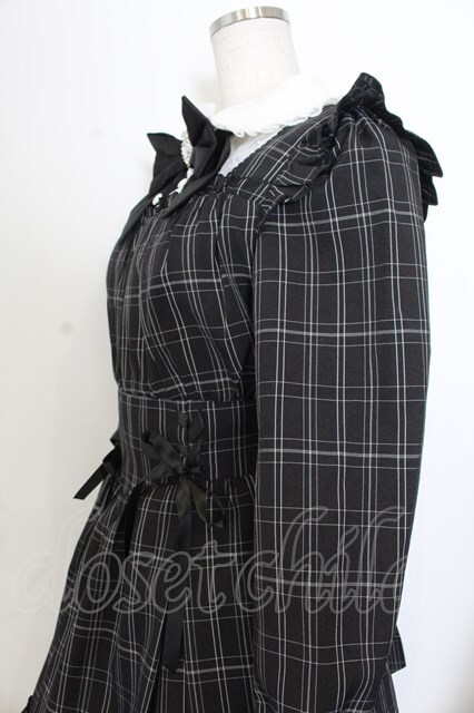 Secret Honey / サイド編み下げチェック長袖ワンピース クロ×シロ O-26-01-20-015-CA-OP-IG-OS [戻る]