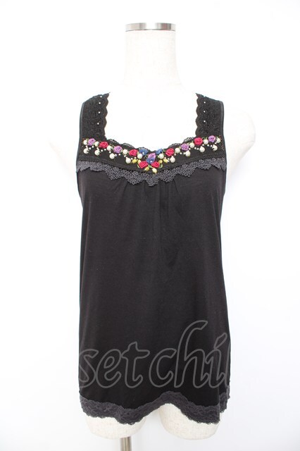 axes femme / ローズ×パールタンク 黒 Y-26-01-22-053-AX-TO-SZ-ZY
