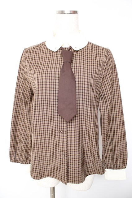 F i.n.t / プチネクタイ付きクレリックチェックシャツ ブラウン Y-26-01-22-075-CA-BL-SZ-ZY