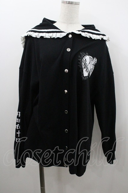 NOEMIE / リボンセーラー襟スウェットブルゾン 黒X白 I-26-01-20-022-LO-TO-SA-ZI