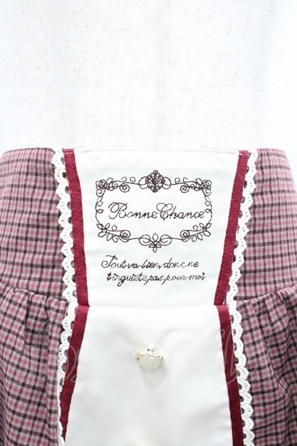 axes femme / ウエスト刺繍入チェック柄スカート ボルドーX赤 I-26-01-20-085-AX-SK-SA-ZI