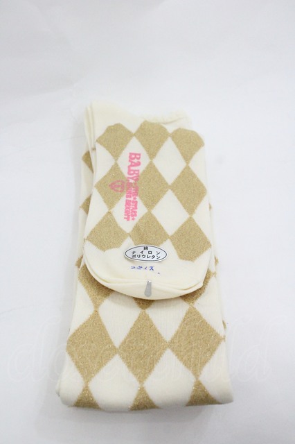 BABY,THE STARS SHINE BRIGHT / ON ダイヤ柄オーバーニー 白Xゴールド I-26-01-20-115-BA-ZA-SA-ZI [戻る]