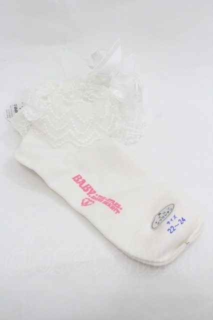 BABY,THE STARS SHINE BRIGHT / チュールレースクルー丈ソックス 白 I-26-01-20-118-BA-ZA-SA-ZI