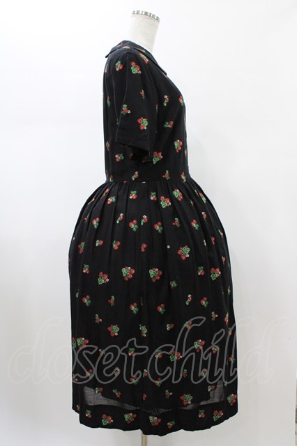 Jane Marple / Strawberry jacquard colette dress ブラック H-26-01-25-1033-JM-OP-KB-ZH
