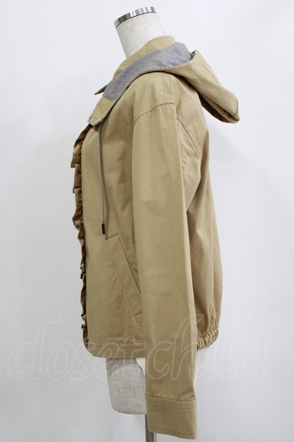 Jane Marple / CORDURA twill hooded blouson beige×monotone check H-26-01-25-021-JM-JA-KB-ZH