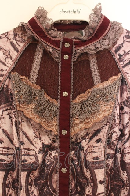 OZZ ANGELO / スタンドネック総柄起毛ブラウス ワイン O-26-01-22-046-OO-BL-IG-OS