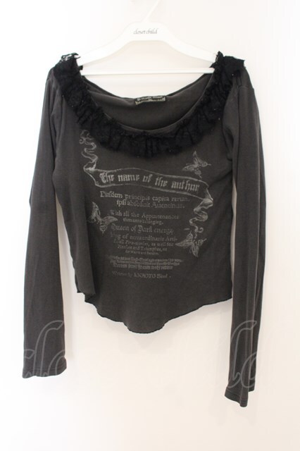 h.naoto Blood / ラッセルレース英字カットソー ブラック(色褪せによりグレー) O-26-01-22-088-HN-TO-IG-OS